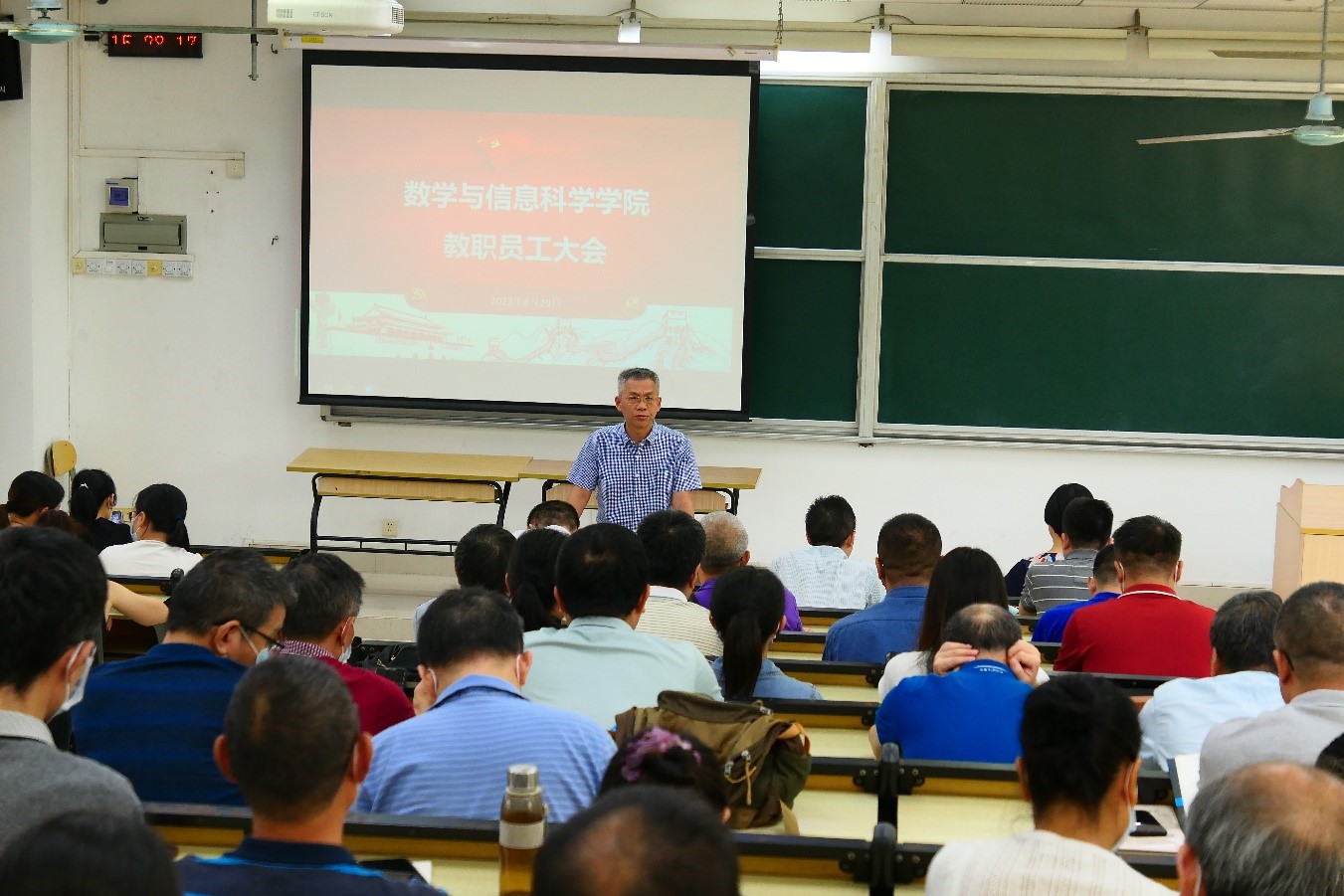 召开新学期全体教职员工大会,部署本学期工作。会议由学院党委书记郑美玲同志主持。