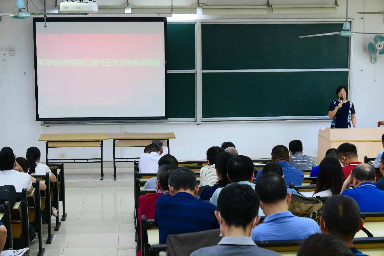 会上,学院党委书记郑美玲同志传达了学校党委三届十五次全体会议精神,深入解读校党委书记、校长魏明海同志代表校党委常委会所作的报告。她强调,学院要进一步强化党建引领,坚持党对各项工作的全面领导,结合学院实际落实全会报告中八个方面的重点工作,全面系统深入学习宣传贯彻《习近平谈治国理政》第四卷,统筹推进学院办学发展和疫情防控等各项重点工作,深入落实立德树人根本任务,着力推动学院一流学科建设再上新台阶。郑美玲同志还就2022年纪律教育学习月活动进行了专题动员和部署,要求全体教职工围绕“勇于自我革命,永葆先进纯洁”的主题,通过党委中心组理论学习、支部“三会一课”、教职工专题学习,以线上线下结合等多种形式开展学习,深刻认识“两个确立”的决定性意义,增强“四个意识”、坚定“四个自信”、做到“两个维护”,努力在党的建设、人才培养、学科专业建设、科学研究等各方面再创佳绩,以实际行动迎接党的二十大胜利召开。